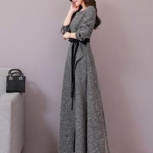 ラウンドネックドレープロングドレス 10004