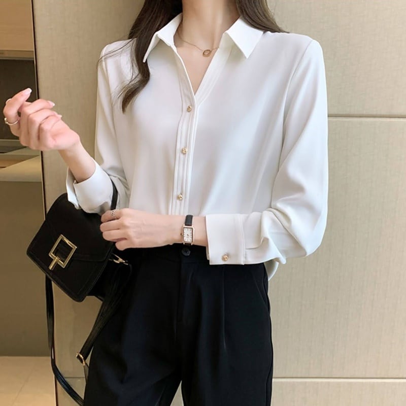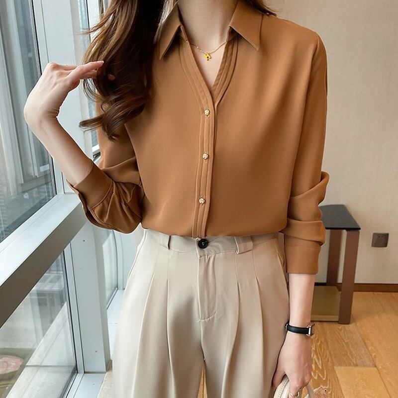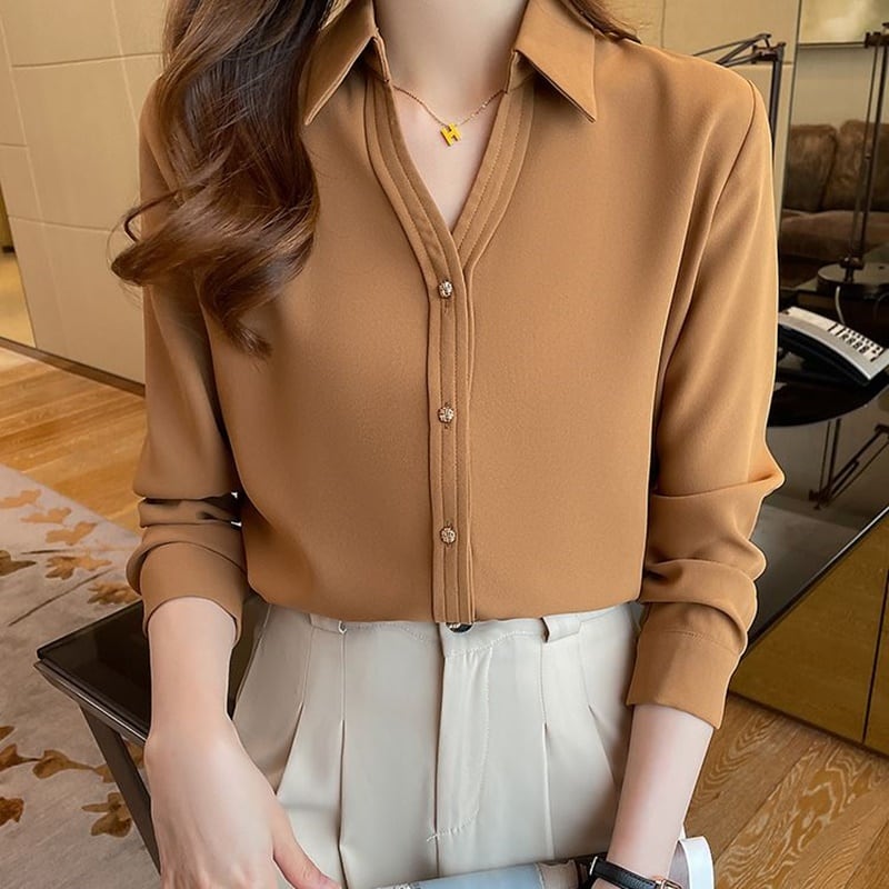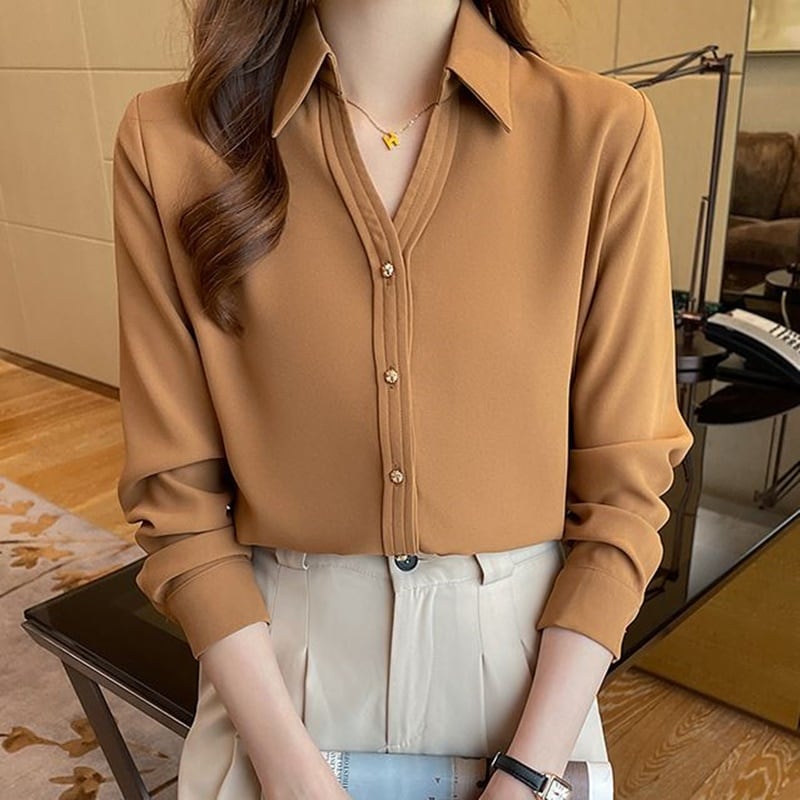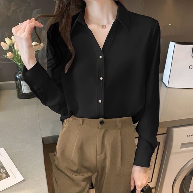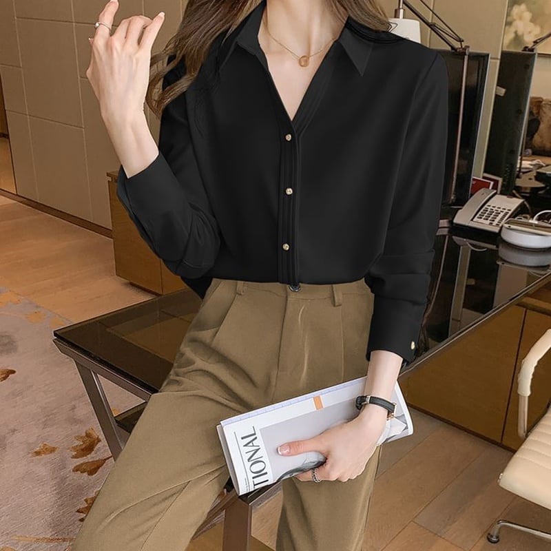 ゴールドボタンシフォンブラウス 3色 10208