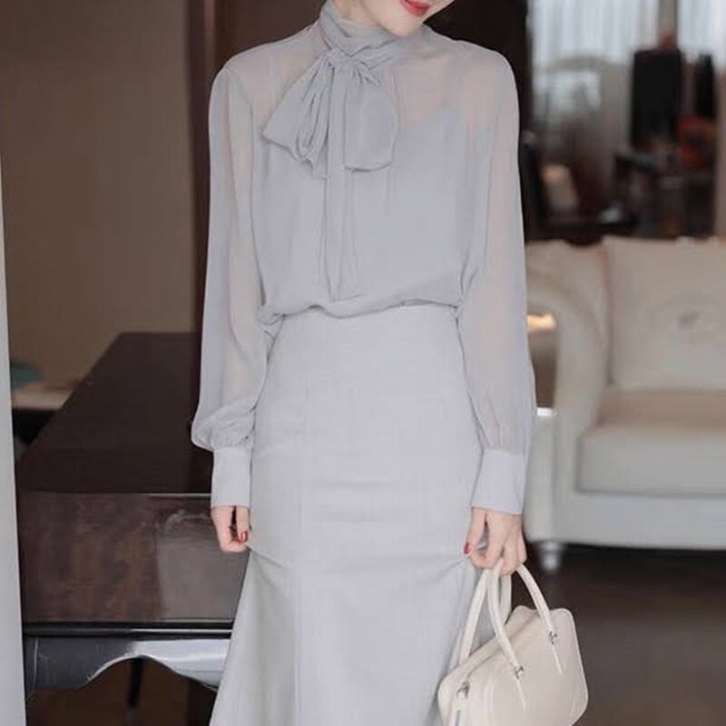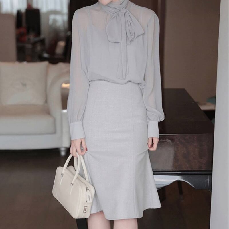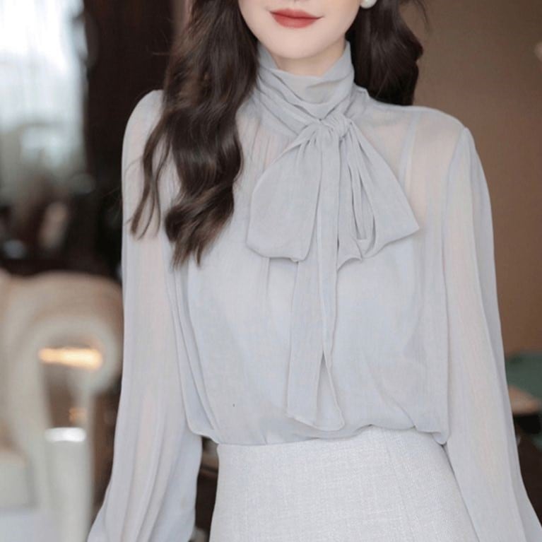 リボンタイシフォンブラウス10296