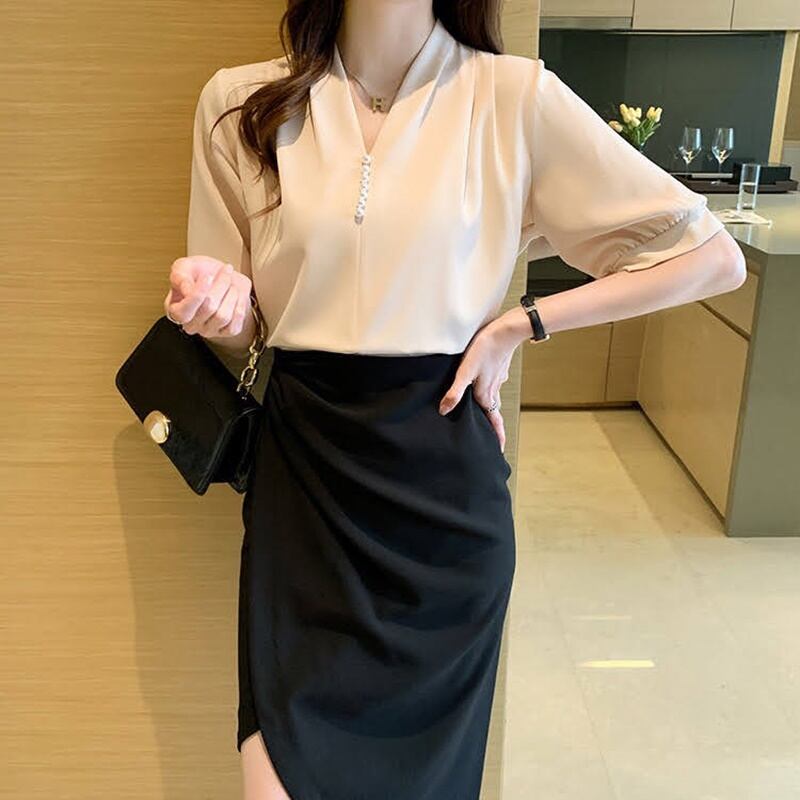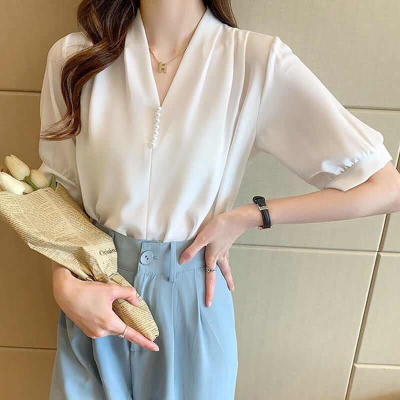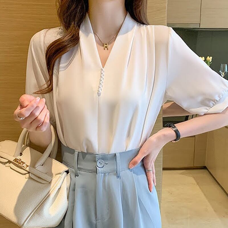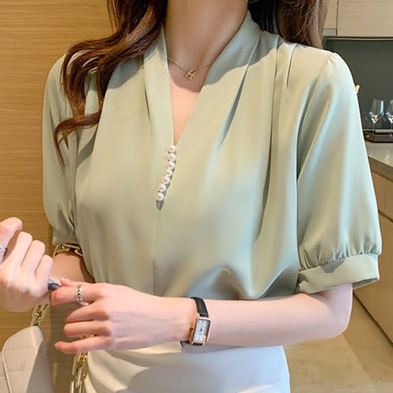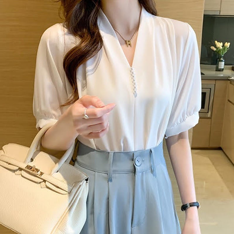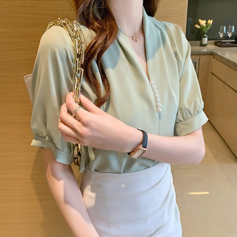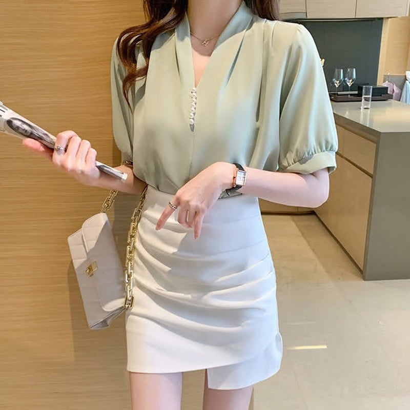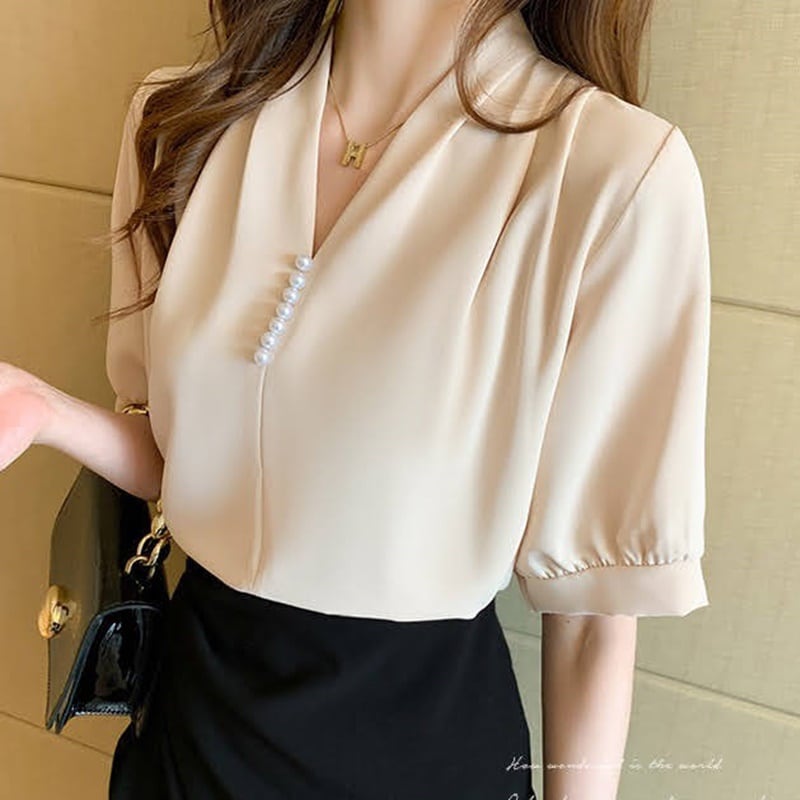 ノーカラータックブラウス 3色 10358