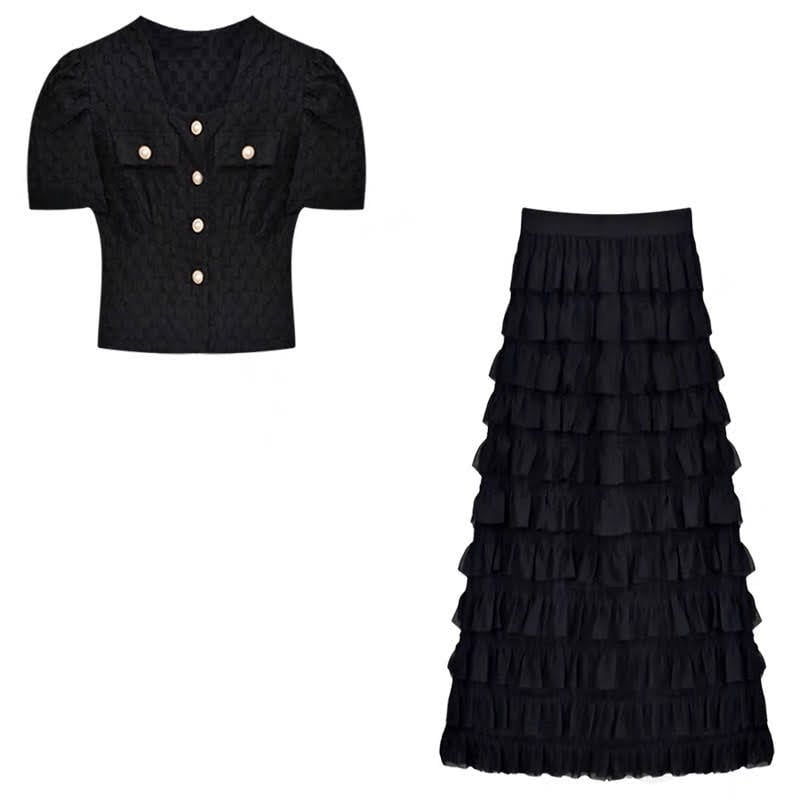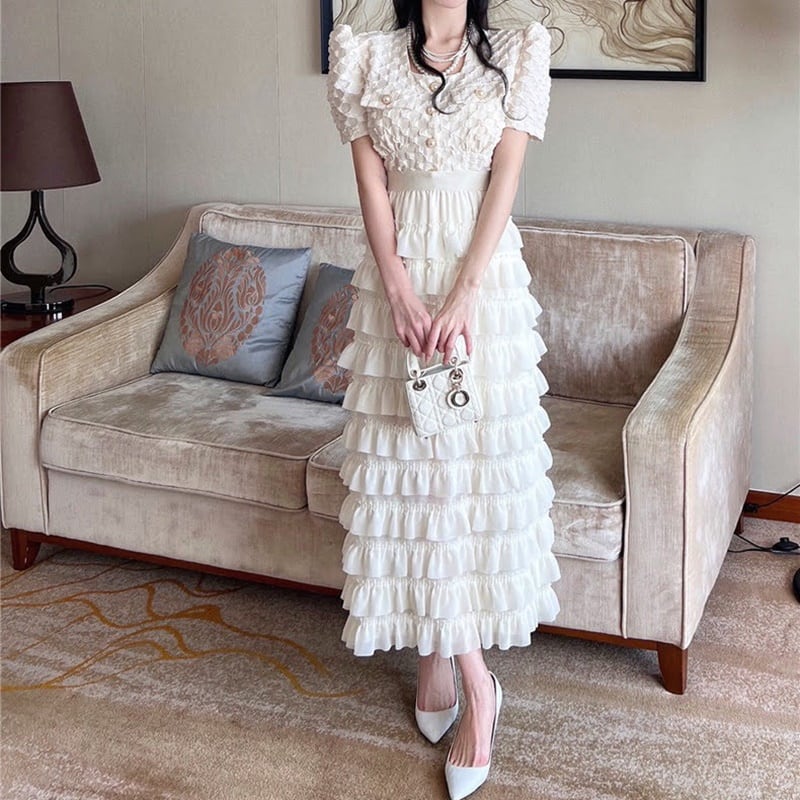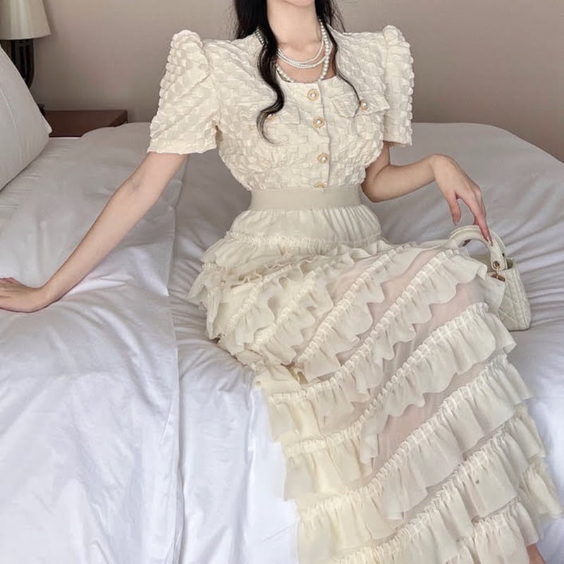 ブラウス ティアードスカートセット 2色 10396
