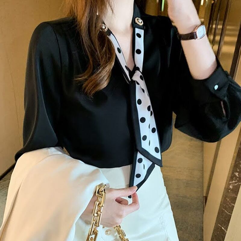 ドット柄スカーフシフォンブラウス 3色 10457