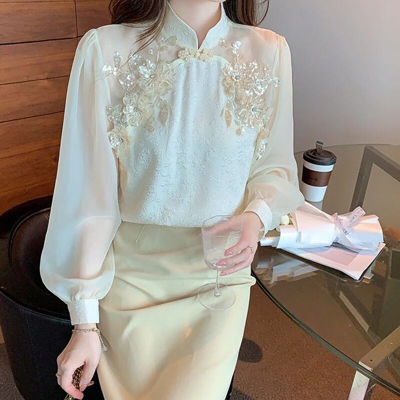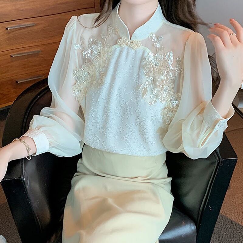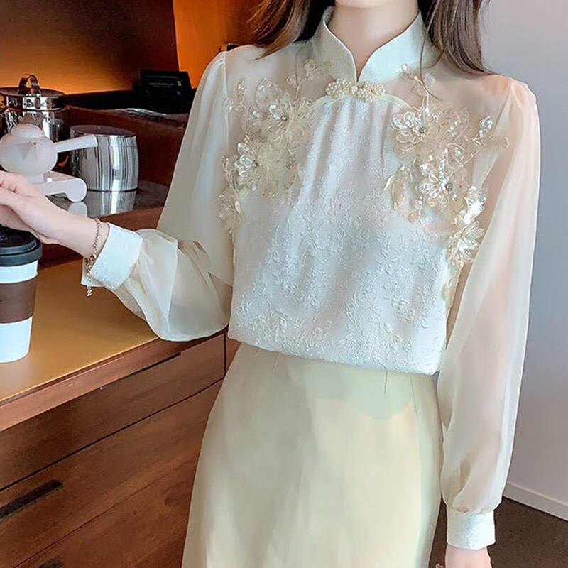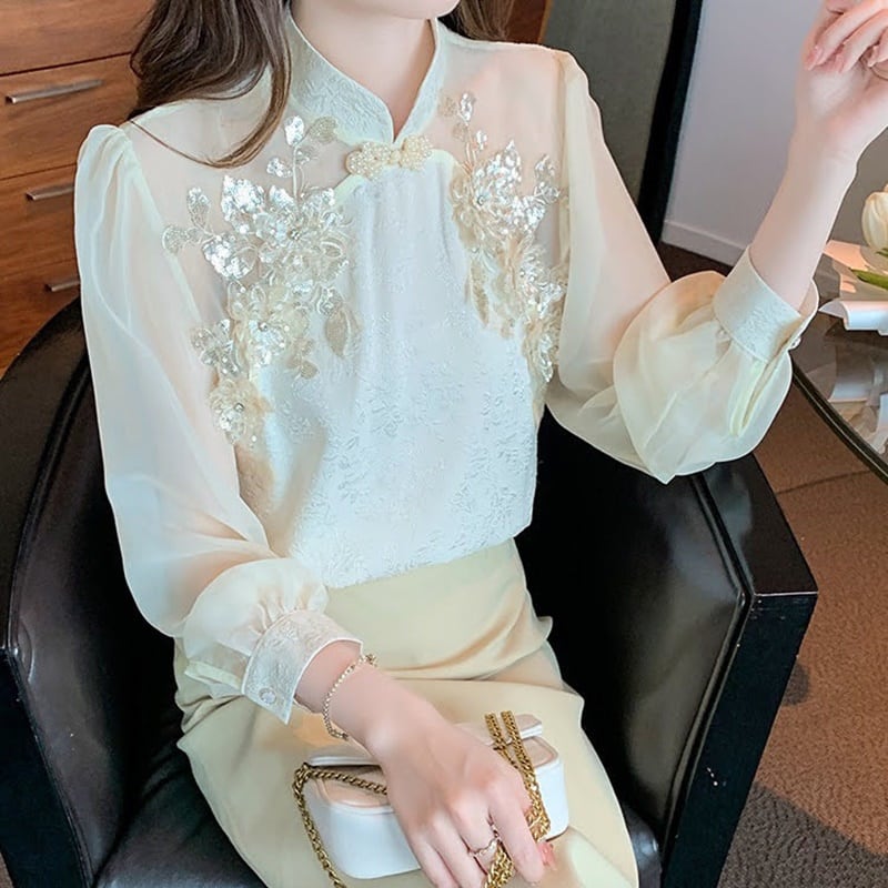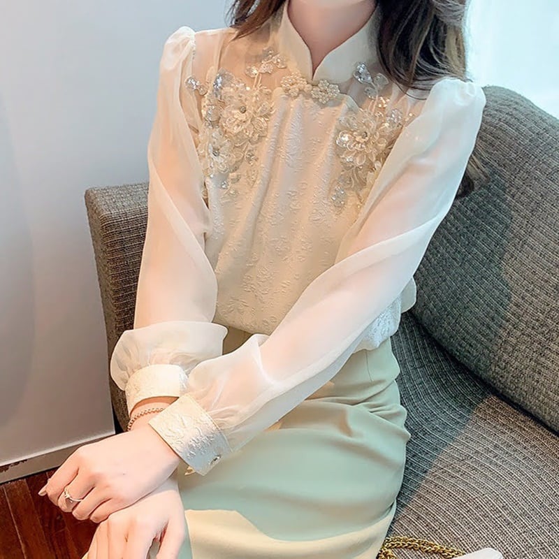 フラワースタンドカラーシアーブラウス 10482
