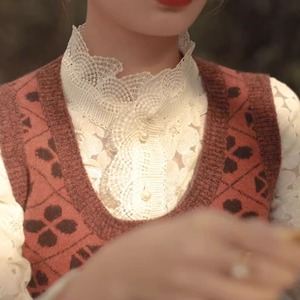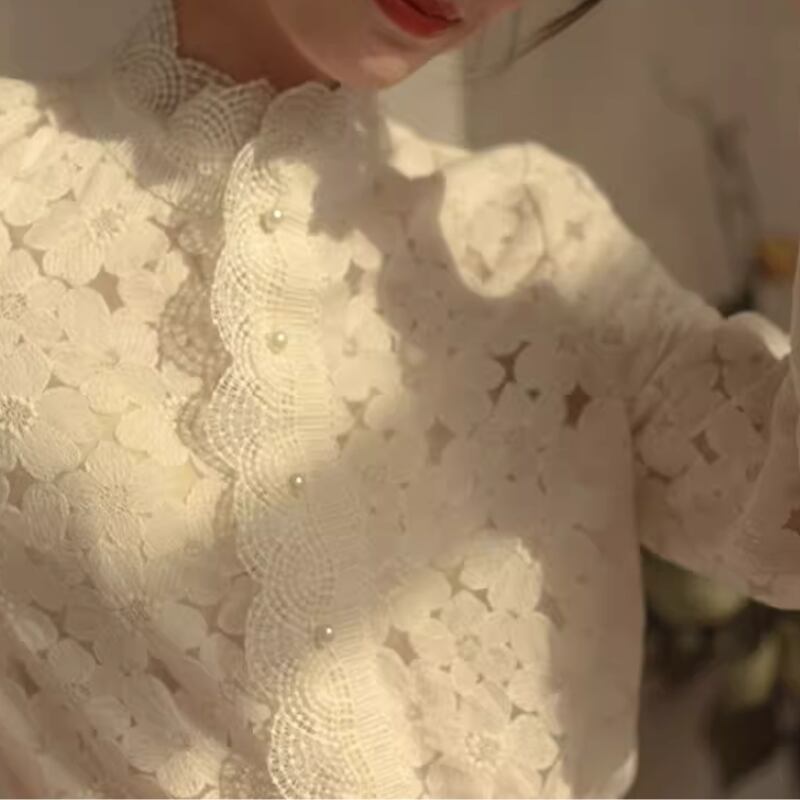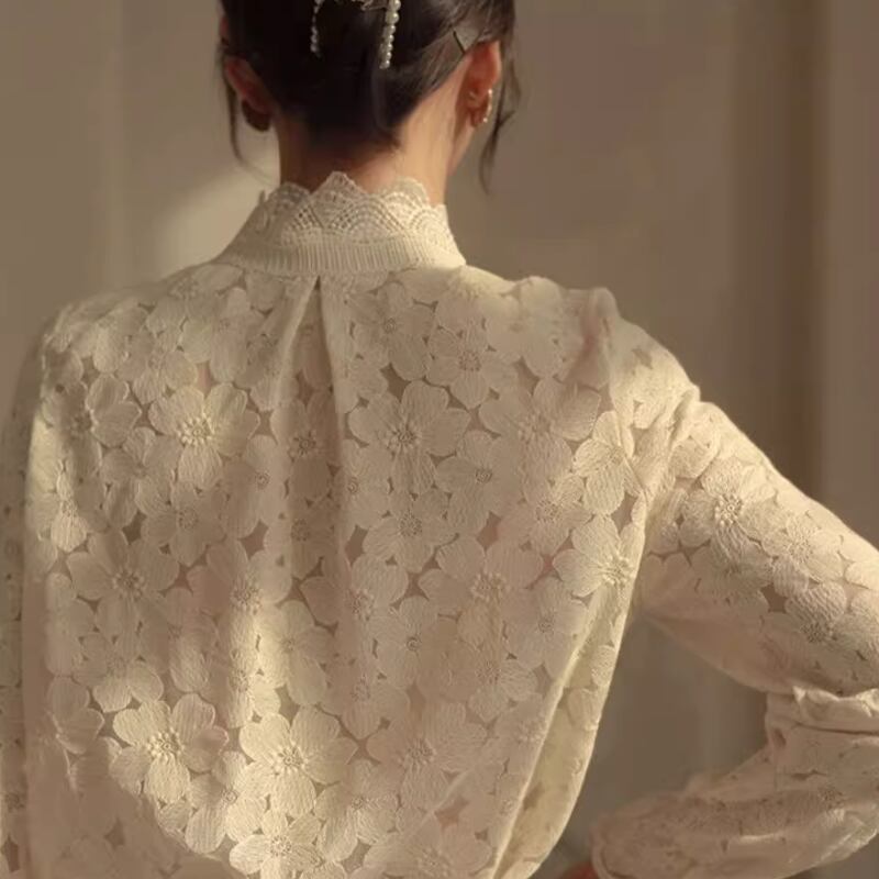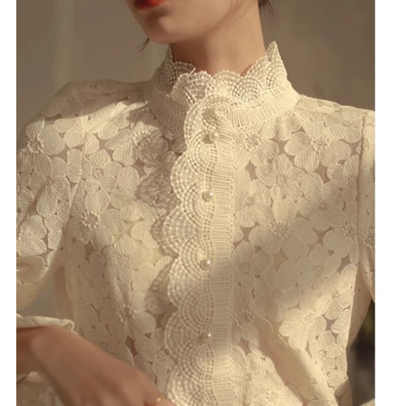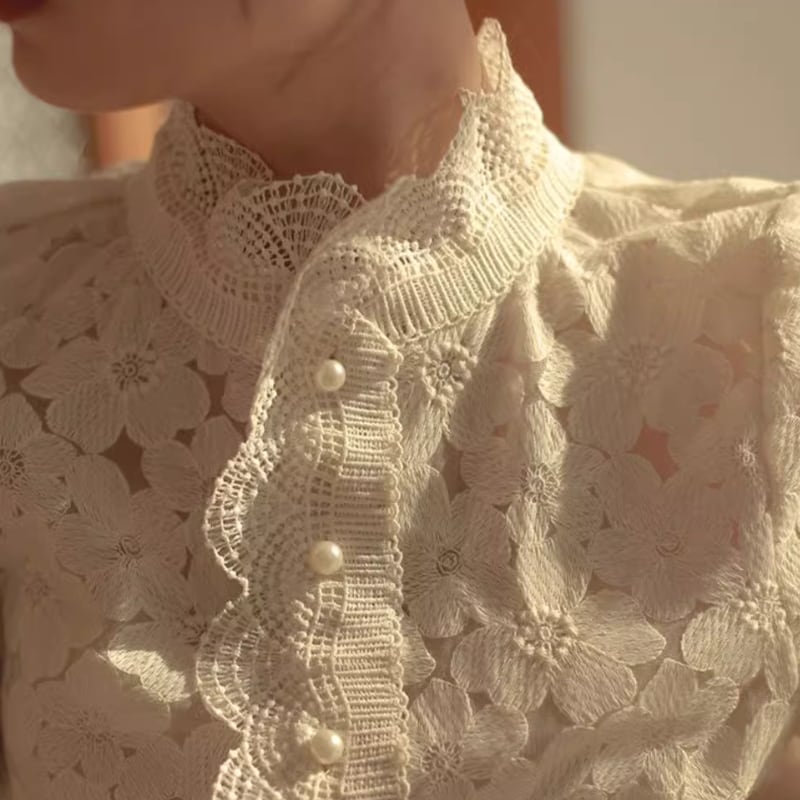 スタンドカラーフラワーレースブラウス 10609