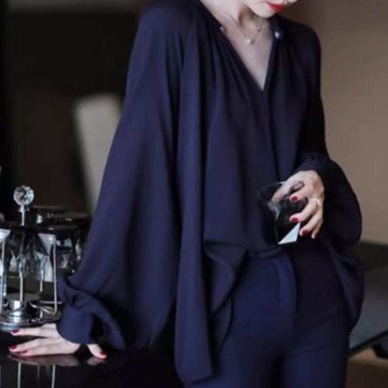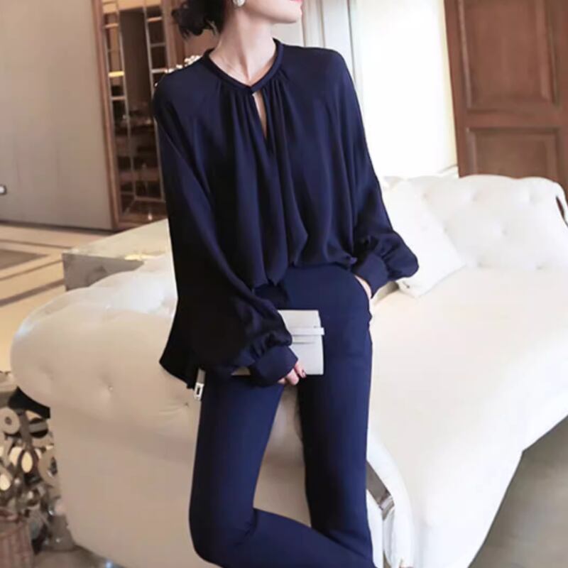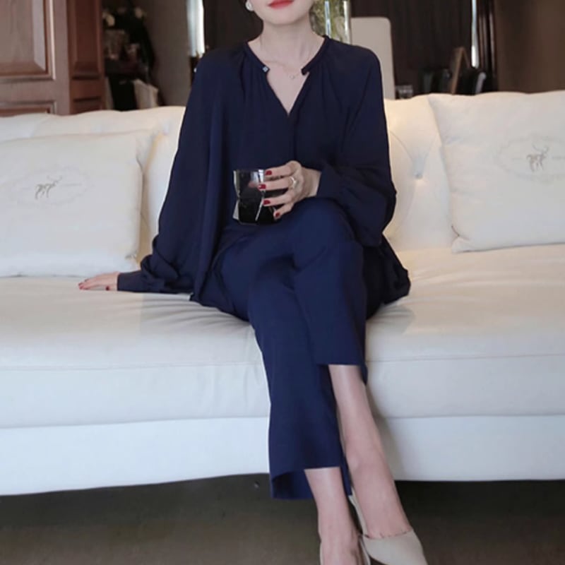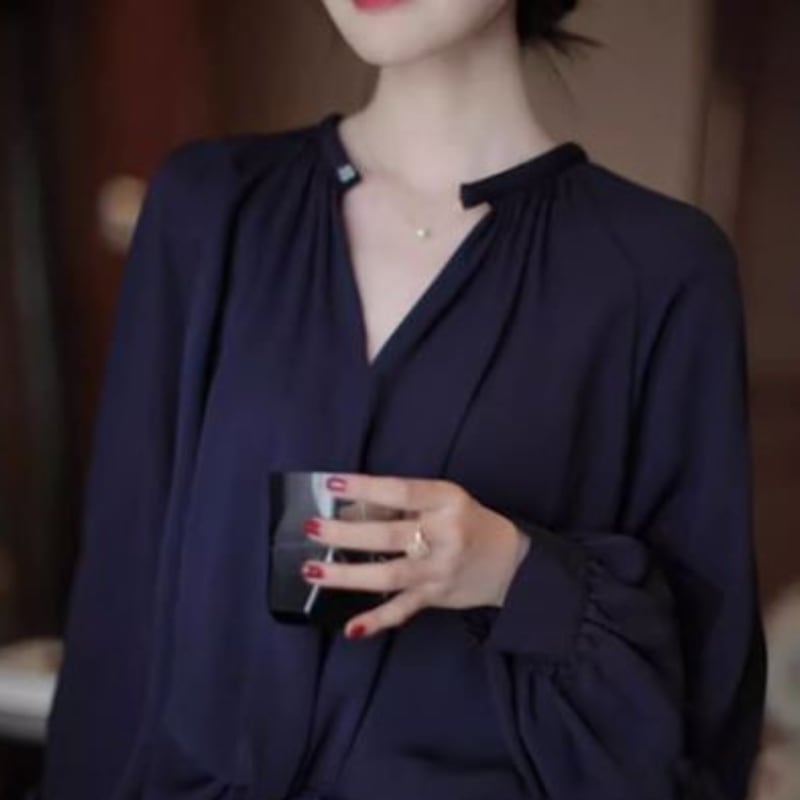 ラウンドネックシフォンブラウス 2色 10622