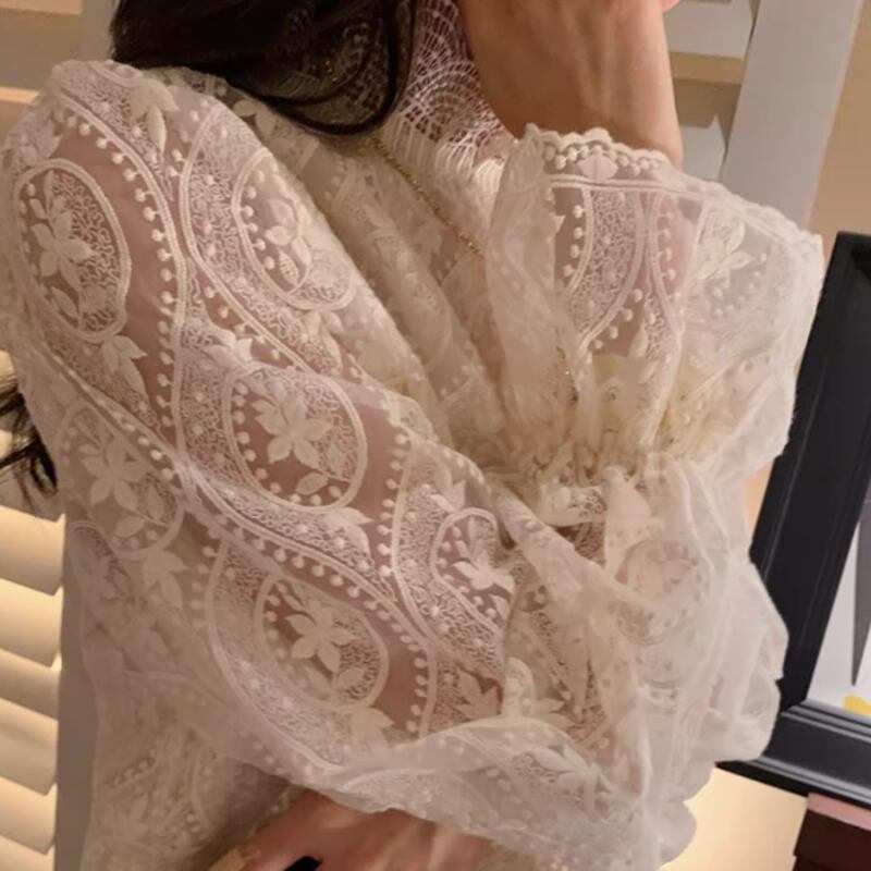 ラウンドネックレースブラウス 10636