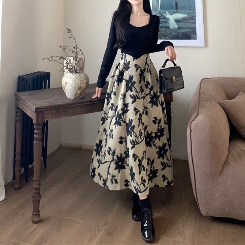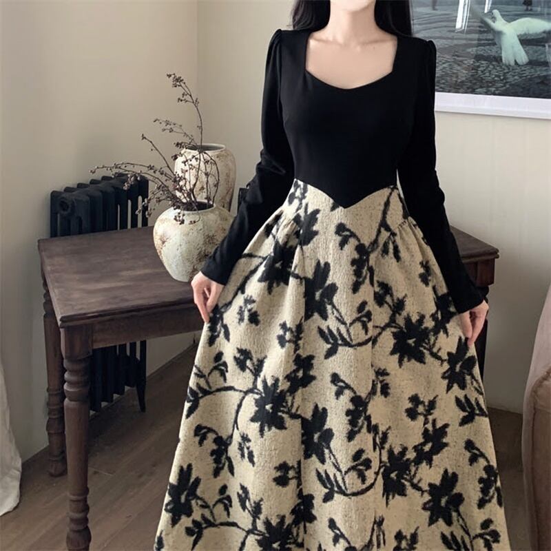 切り替えジャガードロングワンピース 10766